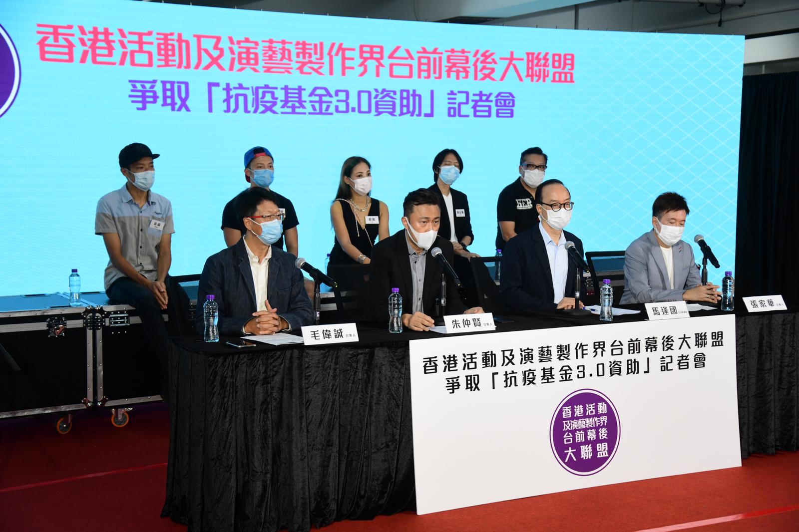 香港活動及演藝製作界台前幕後大聯盟召集人朱仲賢表示,早前向業界僱主、僱員及台前幕後自由工作者收集近1400份問卷調查,發現超過九成八僱主表示生意大幅下跌,當中近八成生意跌幅超過九成以上。另有九成僱員擔心未來3個月會被裁員,近九成八自由身工作者依賴積蓄度日或已轉行。