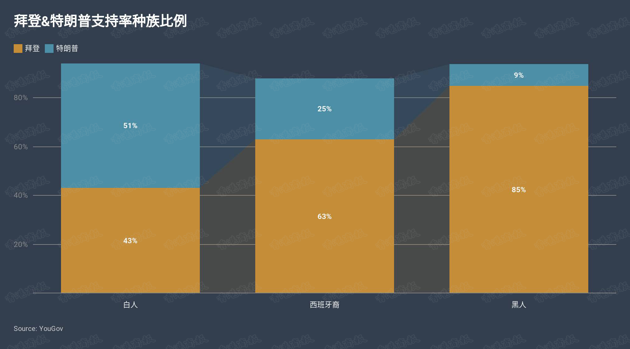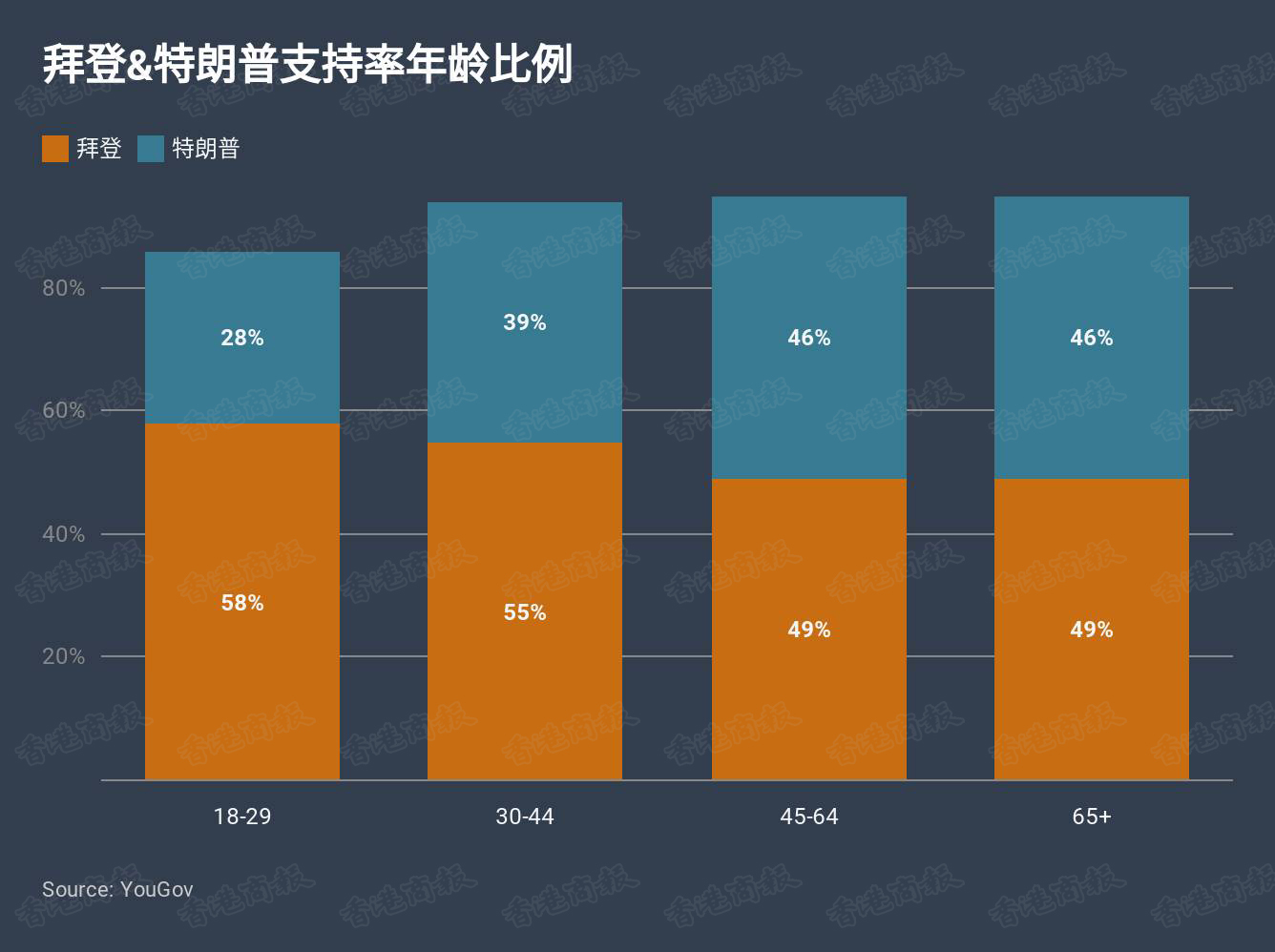 所以,拜登在大量的女性青年且拥有高学历的少数族裔选民中大受欢迎,而大部分中老年白人对於特朗普的支持率要高过拜登。