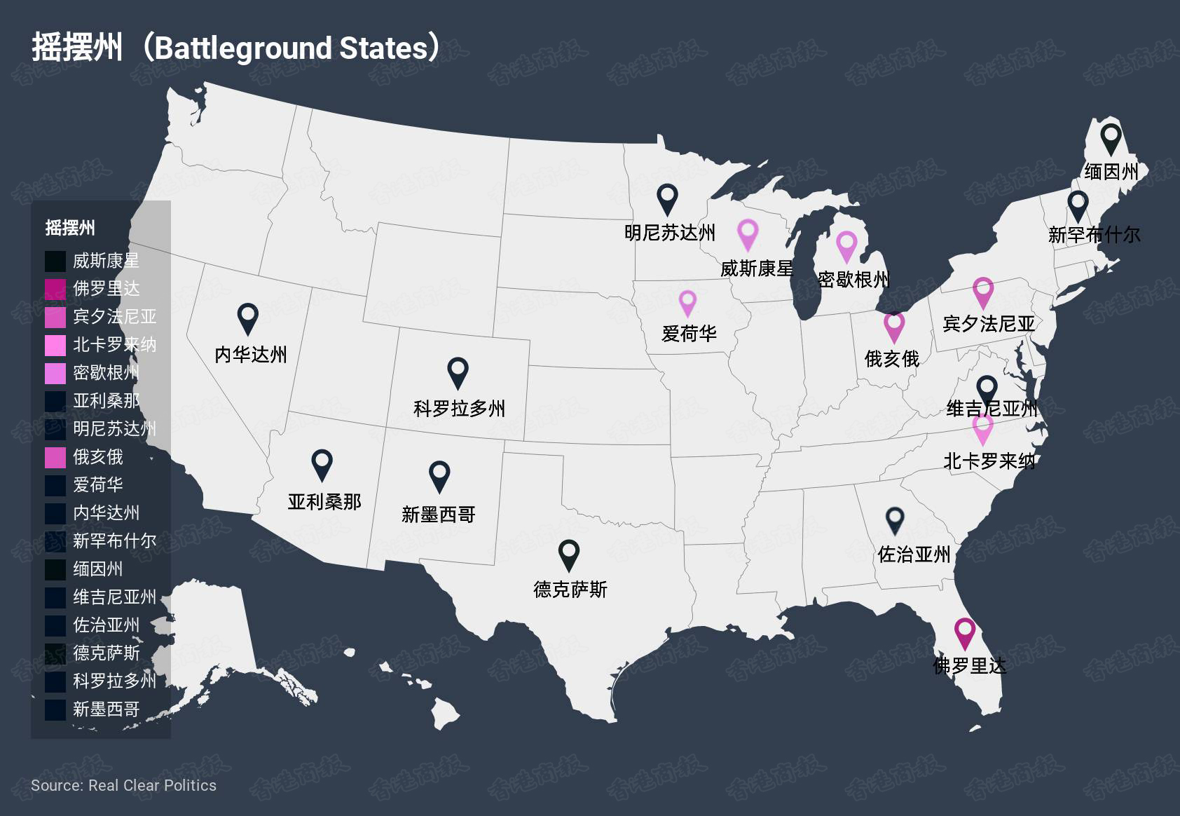 那么目前来看,谁在摇摆州中佔领优势呢?