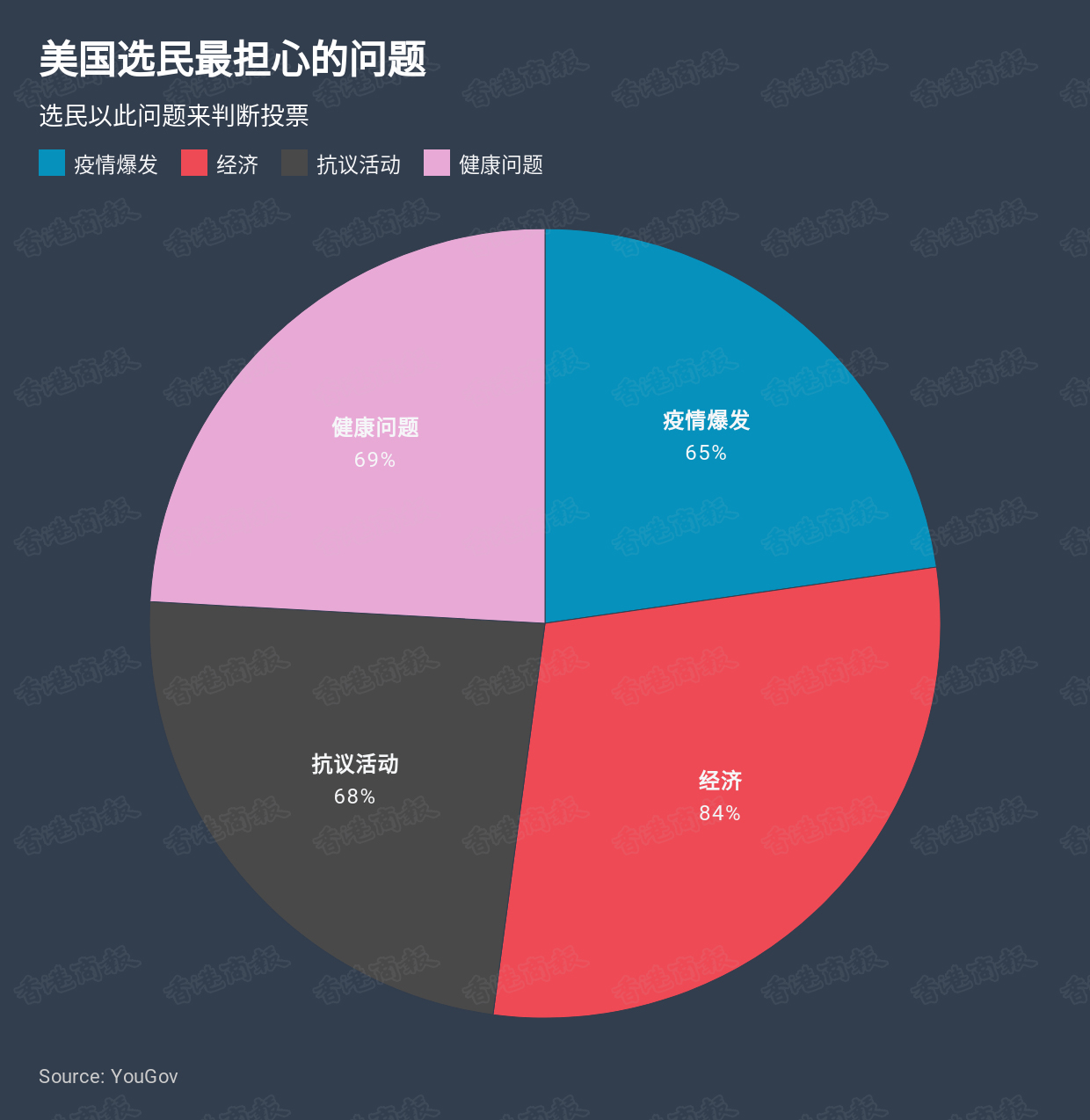 首先,拜登的健康状况和年龄问题一直饱受质疑,今年78岁的拜登如若当选总统则成为美国历史上年龄最大的总统,他在任期间能否有精力去处理繁杂的总统职责等则是选民比较担忧的问题。而最重要的是,据YouGov数据显示,59%的选民对拜登最担心的是他当选後能否处理好经济问题,36%的选民则担心他是否能处理好近期的抗议活动问题。