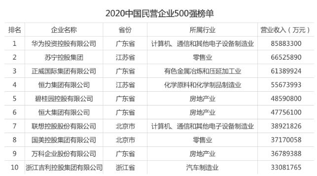 此外,今年民营企业500强中,营业收入超三千亿元的企业规模继续增长,共有10家企业营业收入超过3000亿元。