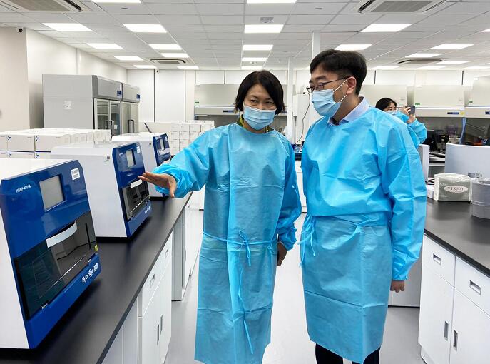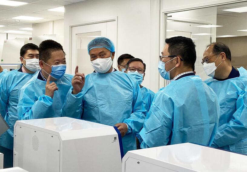 王建瑜帶領潮總首長巡視了凱普標準化驗平台。表示作為潮總一員,在當前新冠肺炎疫情還沒有完全受控的情況下,將把檢測工作作為感謝國家對香港的支持和關懷的回報,她說,凱普生物科技集團作為檢測機構,不但對承擔檢測工作感到十分自豪,也認為是為香防疫抗疫工作作出應有貢獻的難得機會。參加接待的還有凱普集團副總經理管秩生,醫務科學總監黃利寶。