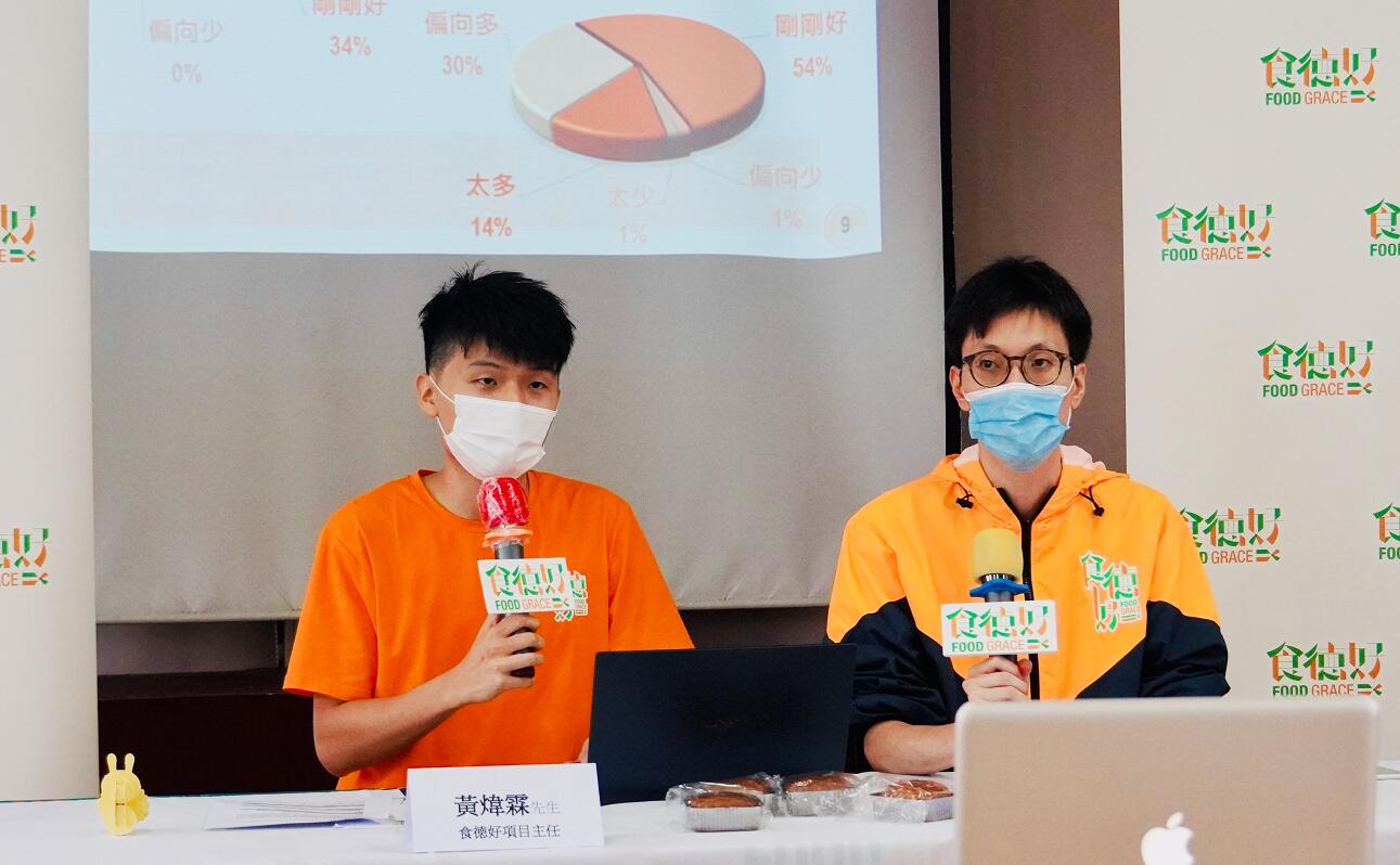 「食德好」項目主任黃偉霖(左一)發佈2020中秋賀禮調查發現,港人願接受一盒少於四個的月餅,惟月餅市場缺乏選擇。