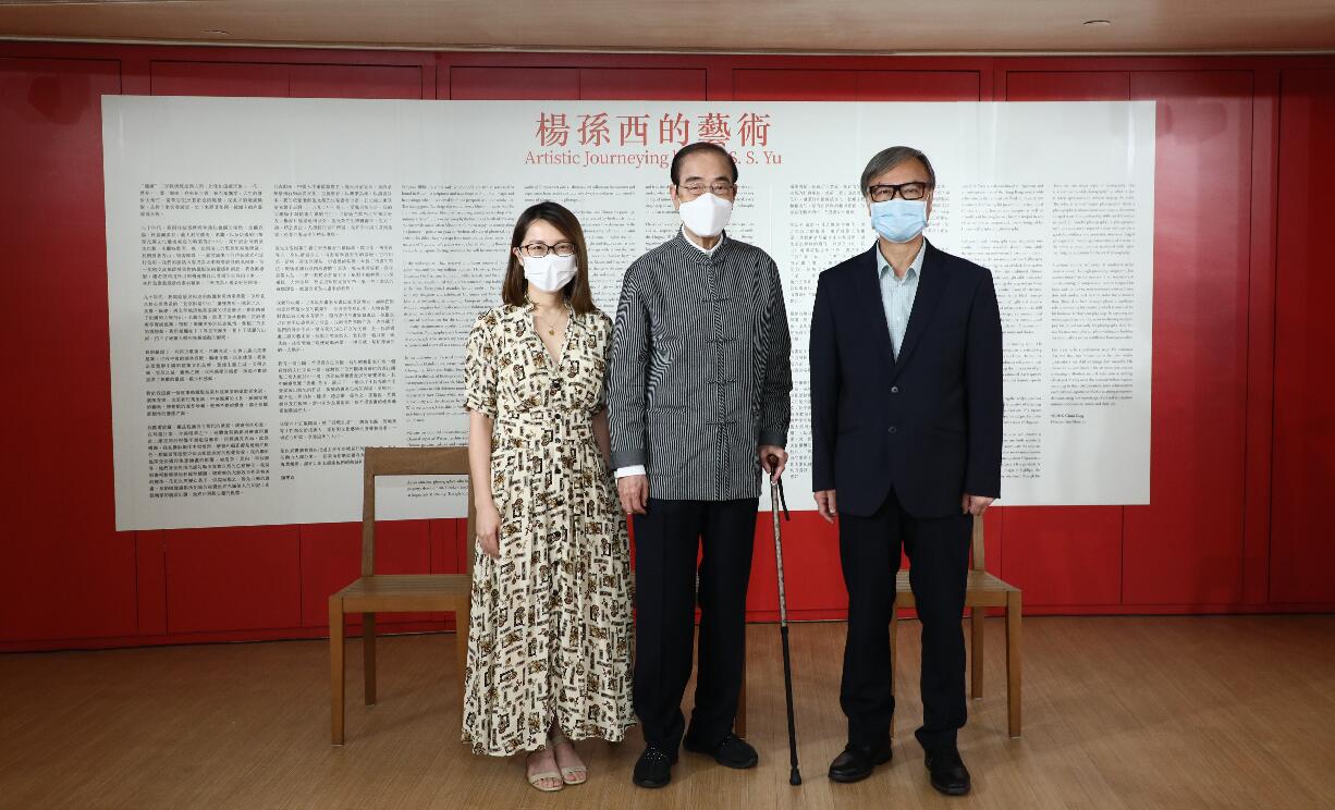 孫少文基金會主席孫燕華(左一)、參展藝術家楊孫西(左二)及一新美術館總監楊春棠(右一)於《行雲流水:楊孫西的藝術》展覽上合影。