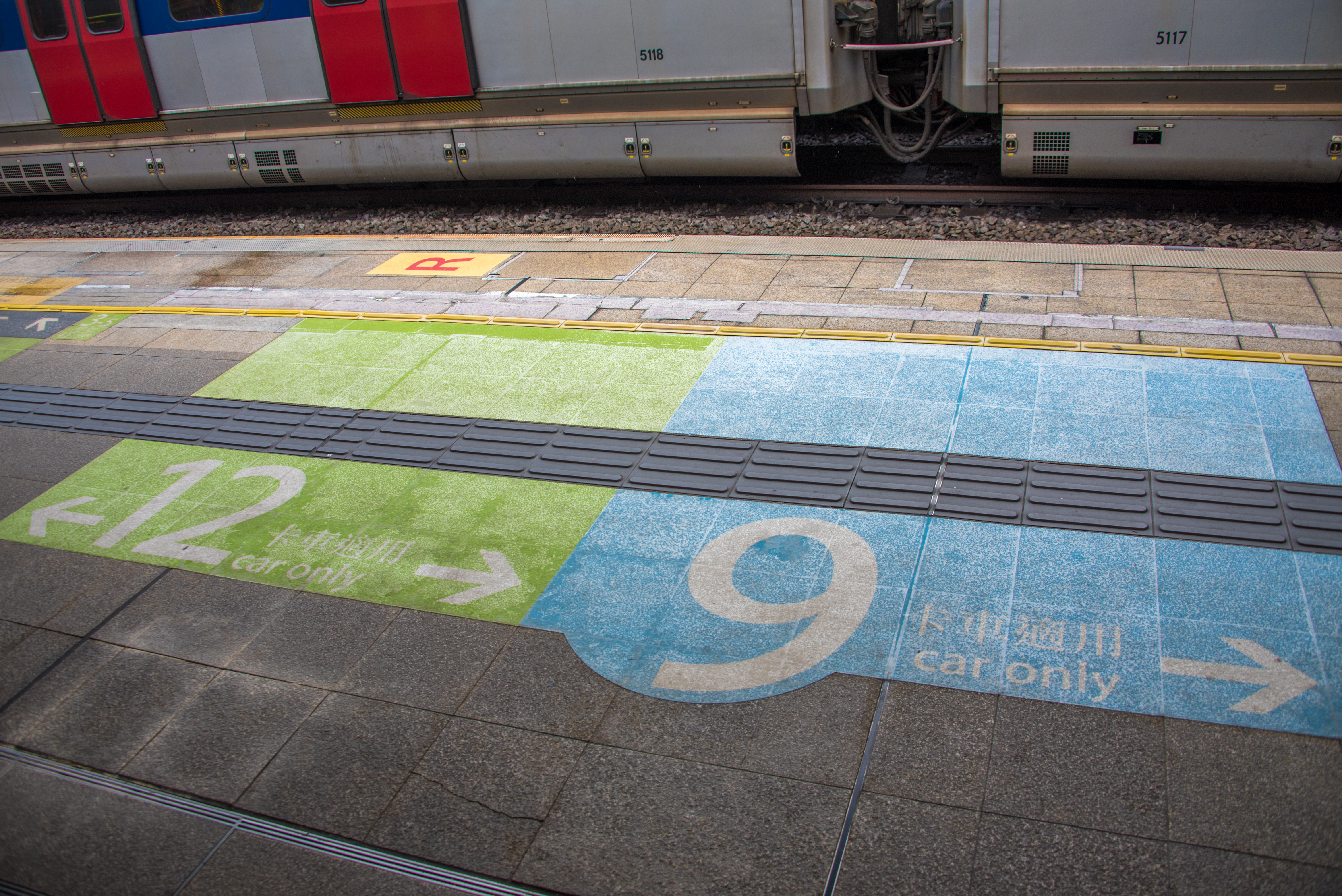 東鐵線月台上已貼上12卡與9卡列車停車位置的標示,方便乘客於正確位置候車。