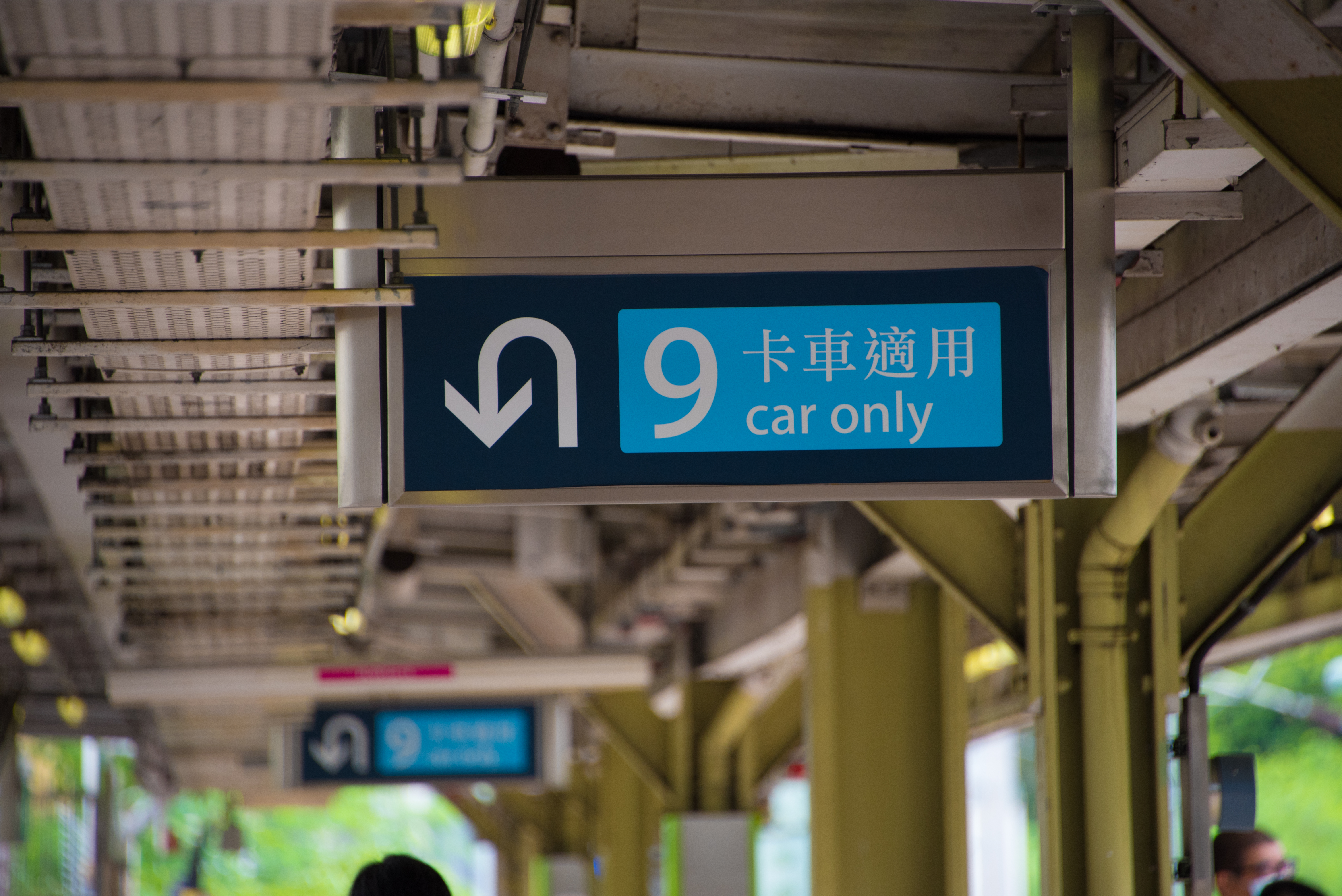 月台上已架設指示牌,讓乘客知道9卡列車停車位置。