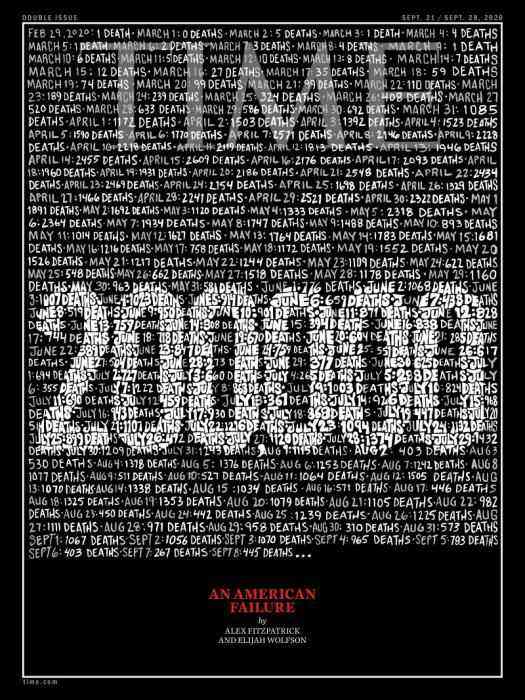 《时代周刊》在封面故事中写道,由于各级和政党的领导不力,对科学家,媒体和专业知识的不信任,以及我们对文化根深蒂固的态度,共同导致了对疫情的应对不足。疫情削弱了美国,暴露了美国的系统性问题,也暴露了美国向其公民的承诺与实际措施之间的鸿沟。