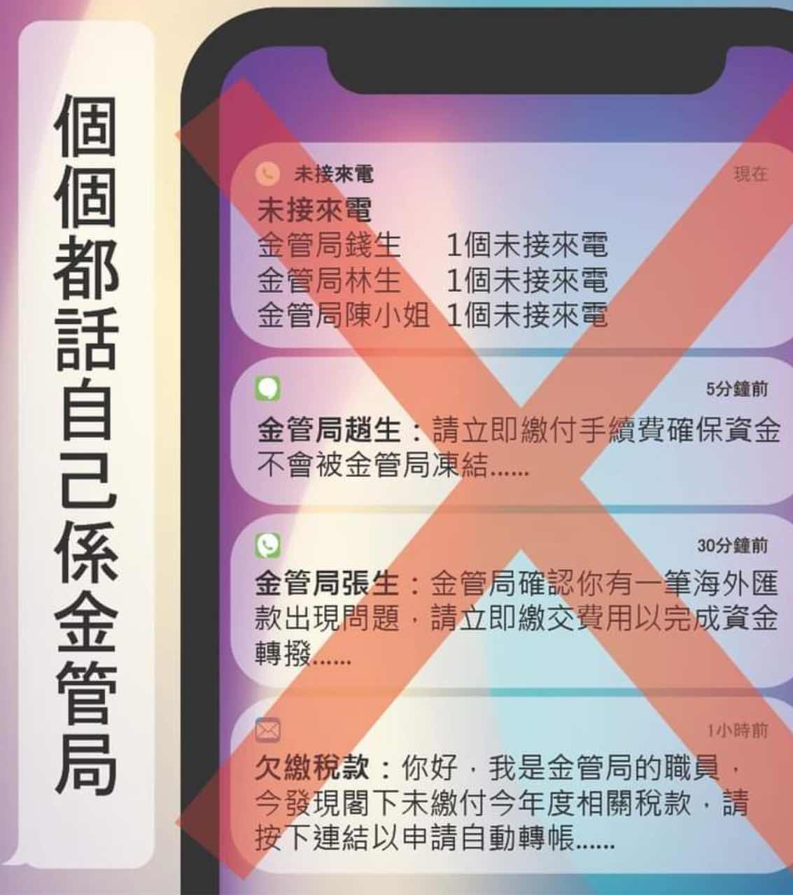 金管局在社交平台發貼,提醒市民如果收到自稱金管局發出的訊息,便要小心。