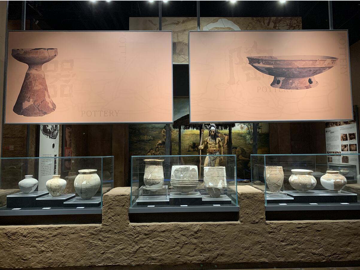 城头山古城遗址博物馆里陈列着各类陶器、玉器。