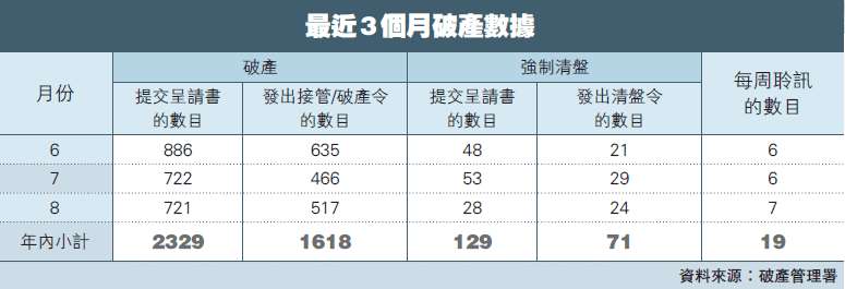 值得留意的是,本港7月初爆發第三波新冠肺炎疫情,破產管理署由7月20日起只提供有限度公共服務,至本月15日起始恢復正常服務。