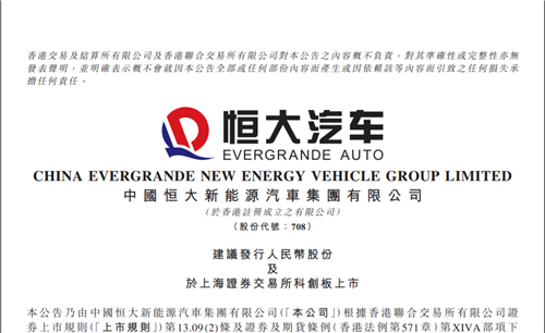 18日早间,恒大汽车公告称,于2020年9月18日,本公司董事会决议本公司拟发行人民币股份,并拟于上海证券交易所科创板上市。