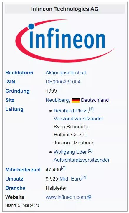 英飞凌公司简介。1999年成立,47400雇员,年营业额99.25亿欧元