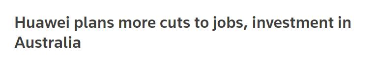 「简单来说,对华为的5G禁令已经使得我们在澳大利亚裁减了1000个高科技和高收入工作岗位」,华为澳大利亚子公司首席企业事务官杰里米·米切尔(Jeremy Mitchell)在一份邮件声明中称,「我们的员工数量已经从1200人降至不到200人,明年还会更低。」