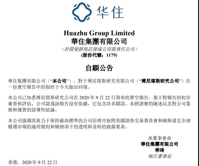 对于沽空机构的指控,华住也在今日早间作出回应,表示「基于对报告初步的检查和评估,公司认为这份报告是缺乏事实依据的,而且它包含大量的错误、未经证实的陈述,以及对公司业务及运营的误导性结论。」对沽空机构的指控全盘否定。