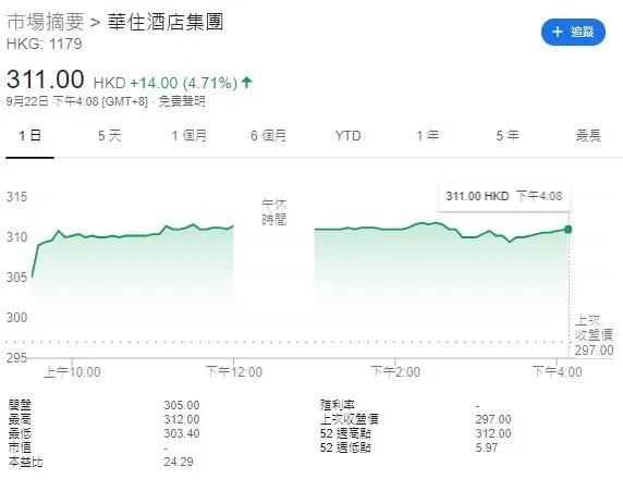 隔晚美股的表现似乎未影响华住首日挂牌的成绩,今日华住开报305元,较招股价297元高出2.7%,最高曾升至312元,最终收报311元,升14%,市值达987亿元,不计手续费,每手赚700元。这或许就是「巨无霸」的威力?