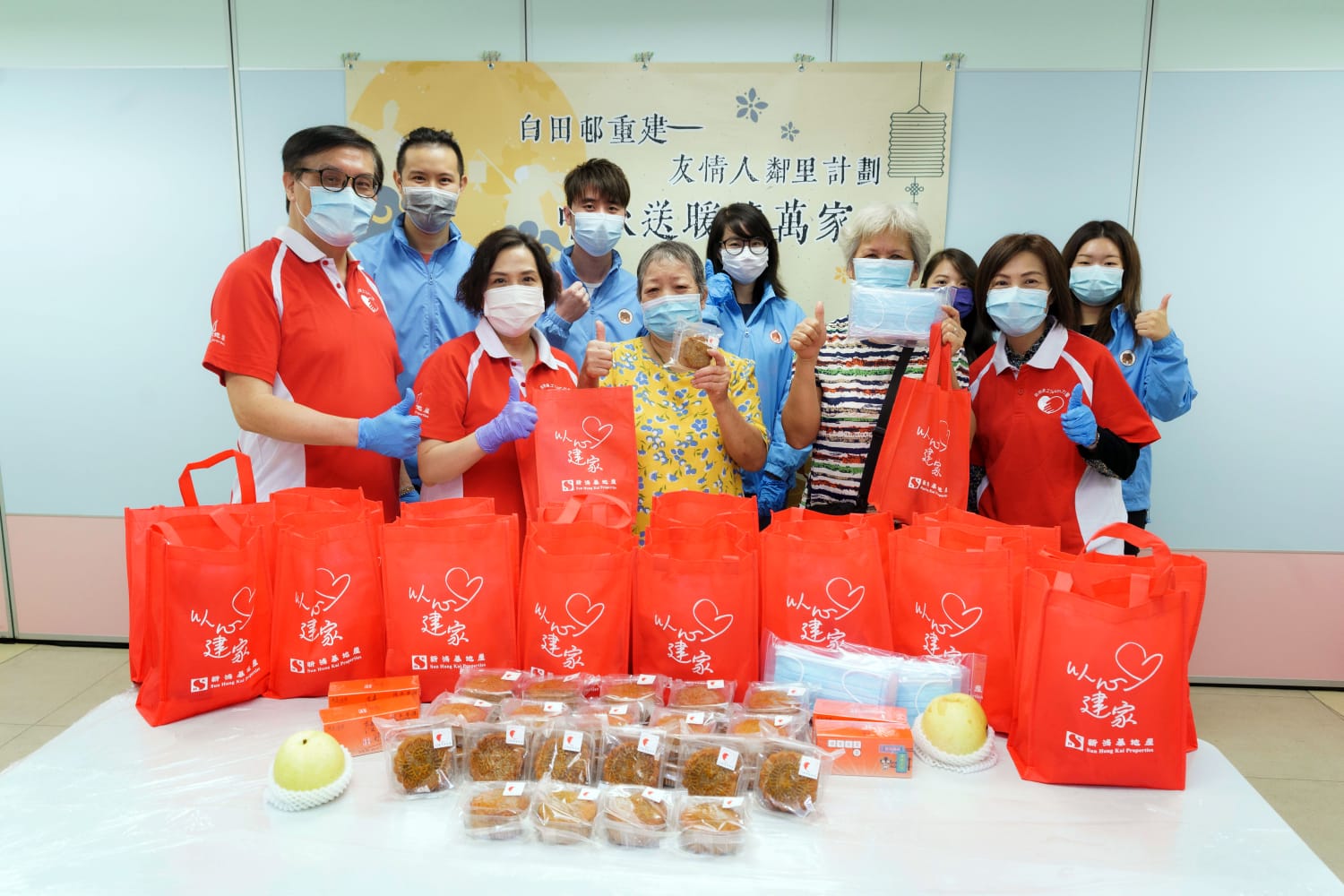另外,新地亦透過「白田邨重建 ─ 友情人鄰里計劃」,向深水埗區內長者派發應節食品及防疫禮物包,讓大家在疫情下能安心度過一個溫馨的中秋佳節。