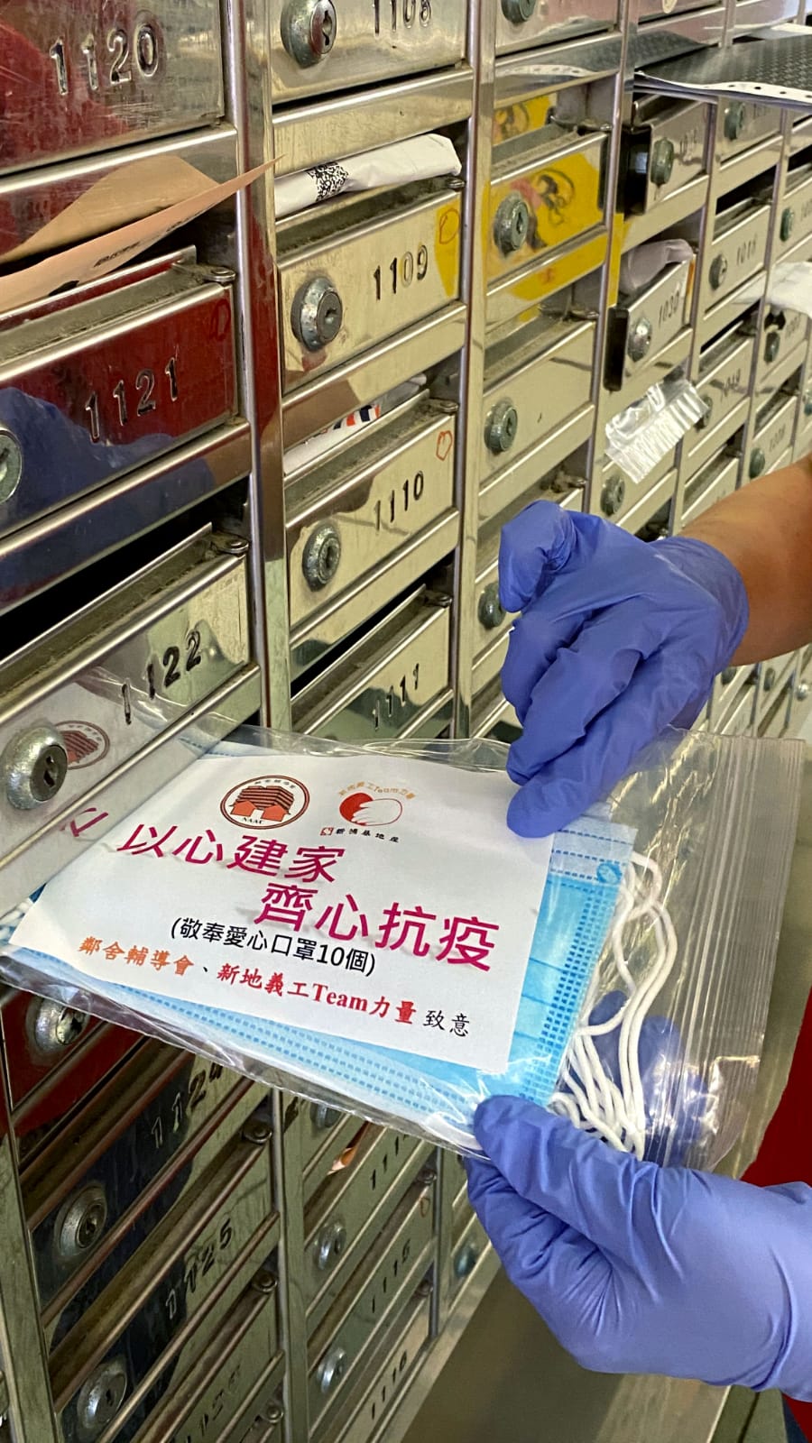 此外,考慮到疫情令不少「老友記」的社交生活大減,在需要維持社交距離的情況下,新地義工隊改以不同的方式,提供適時的支援,如以電話慰問受助長者,透過簡單而真誠的噓寒問暖,舒緩長者的情緒,並為他們的心靈帶來點點安慰。義工隊更組織「快閃行動」,將口罩派送到長者的信箱。雖然無法親身探訪,但相信老友記收到口罩時,亦感受到義工隊濃濃的人情味。