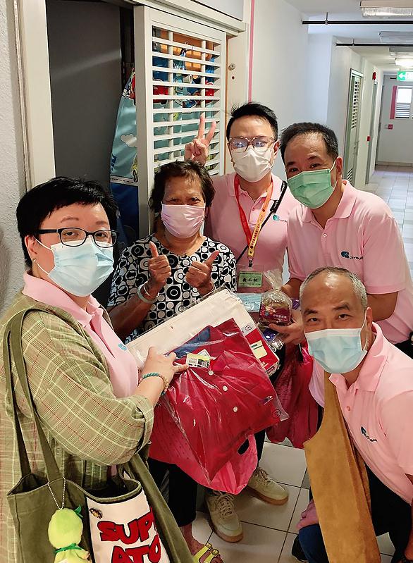 謝加利聯同港基愛心義工隊成員探訪獨居長者和兩老家庭,並送上祝福和應節禮物。