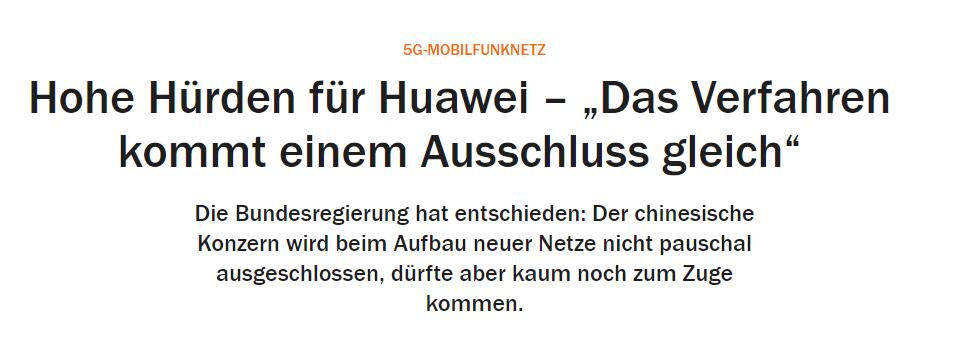 报道援引德国IT专家Martin Schallbruch观点:「实际上,该过程等同於排除华为。」