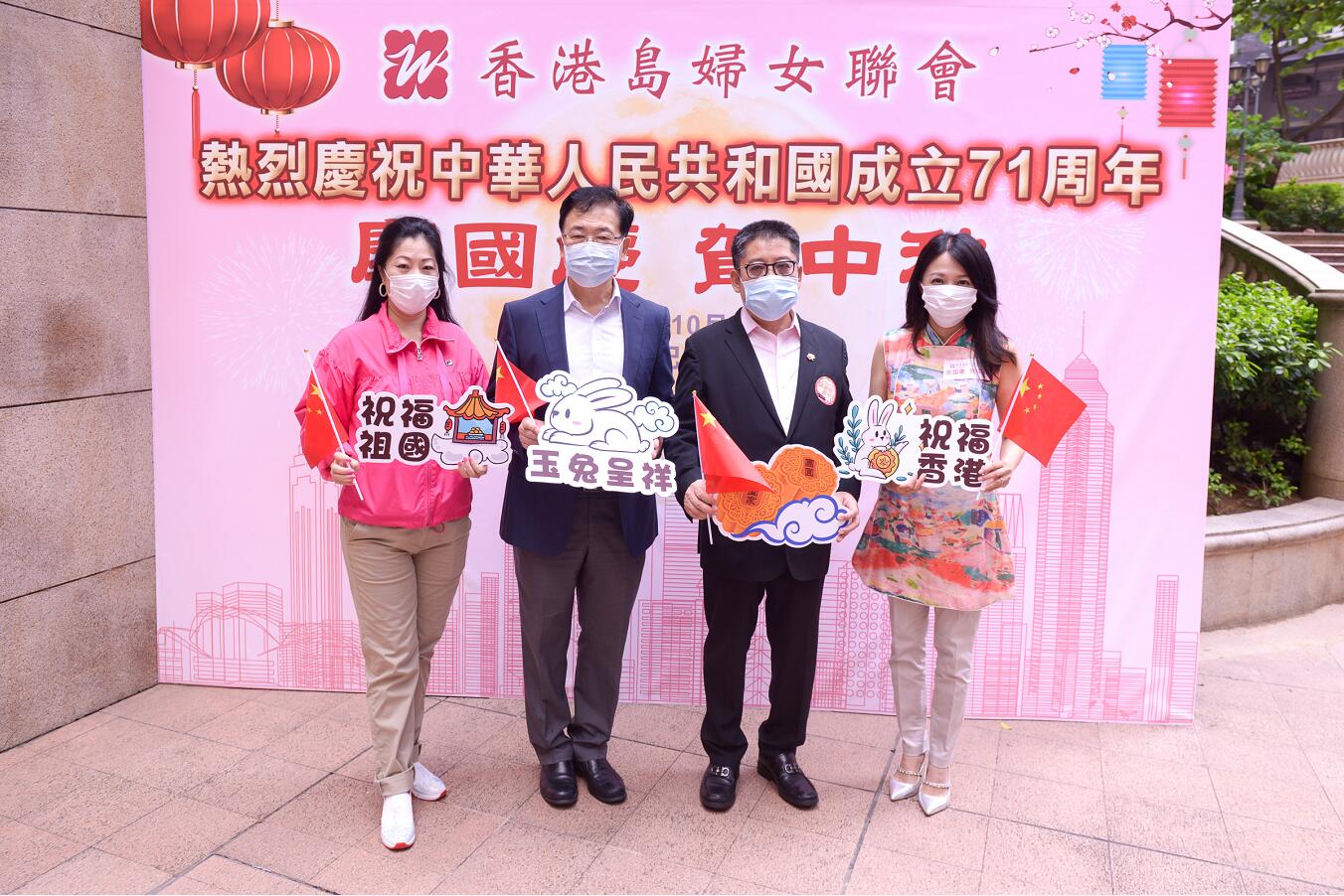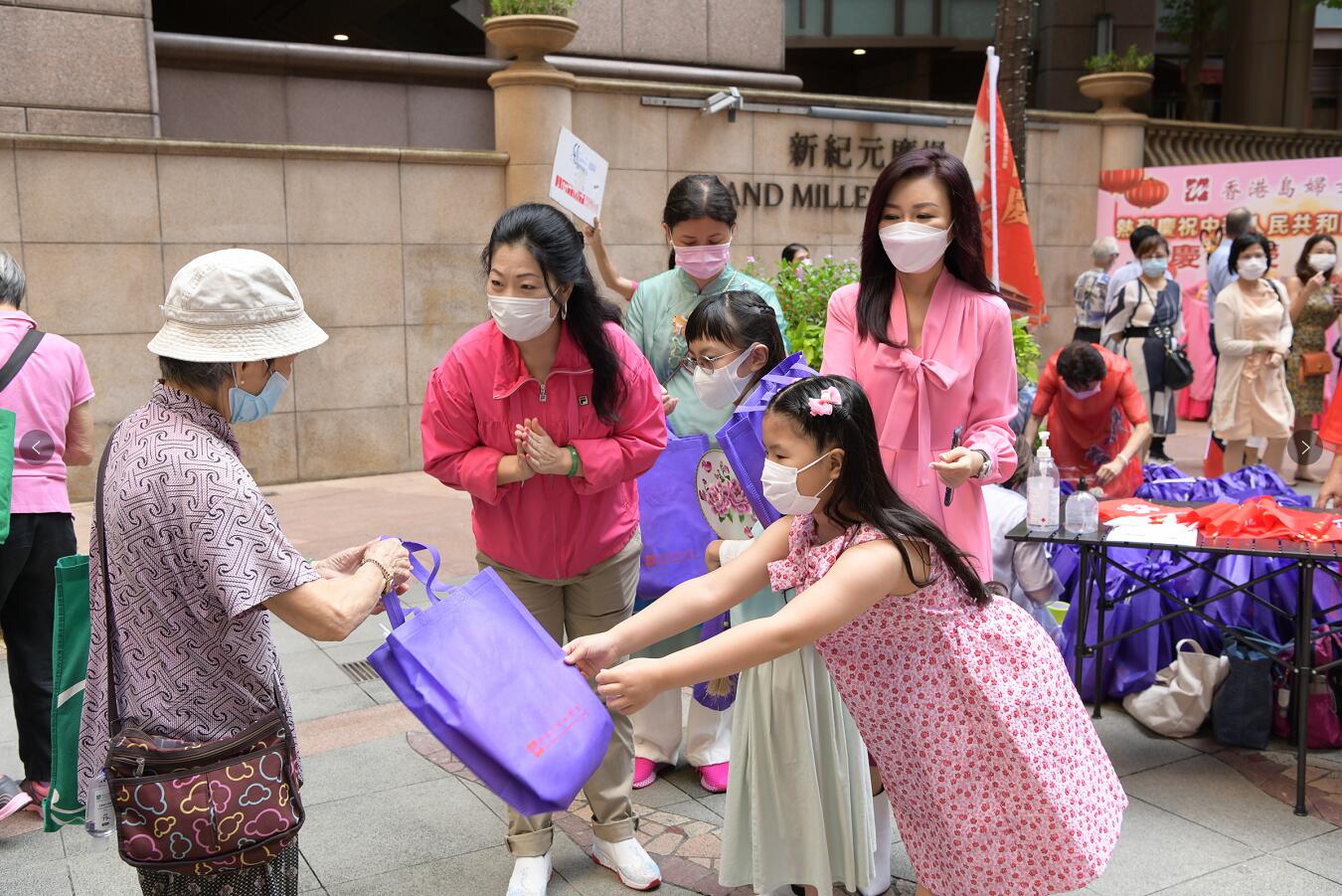 今年國慶中秋兩節喜相連,為了讓香港市民感受濃濃的中秋及國慶氣氛,香港島婦女聯會今日於上環新紀元廣場舉行「慶國慶 賀中秋」福袋派發行動。亞洲陽光藝術團的表演者身穿傳統嫦娥服飾與香港島婦女聯會的義工們的傳統中國服飾交相輝映,展現中國傳統文化,傳遞對祖國及香港美好的祝福。