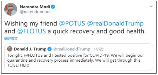 印度總理莫迪发推祝特朗普夫婦早日康復