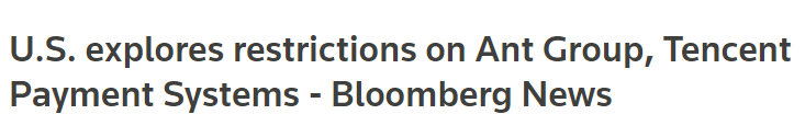 兩名知情人士向彭博社透露,美國高級官員曾於9月30日在白宮舉行會議,討論了有關對阿里、騰訊施加限制的想法。一些官員擔心,螞蟻集團及中國的其他支付平台可能會主導全球數字支付體系。報道稱,此次限制中企的想法來源於那些對華強硬的美國官員,尤其是在美國國務卿領導的國務院中。