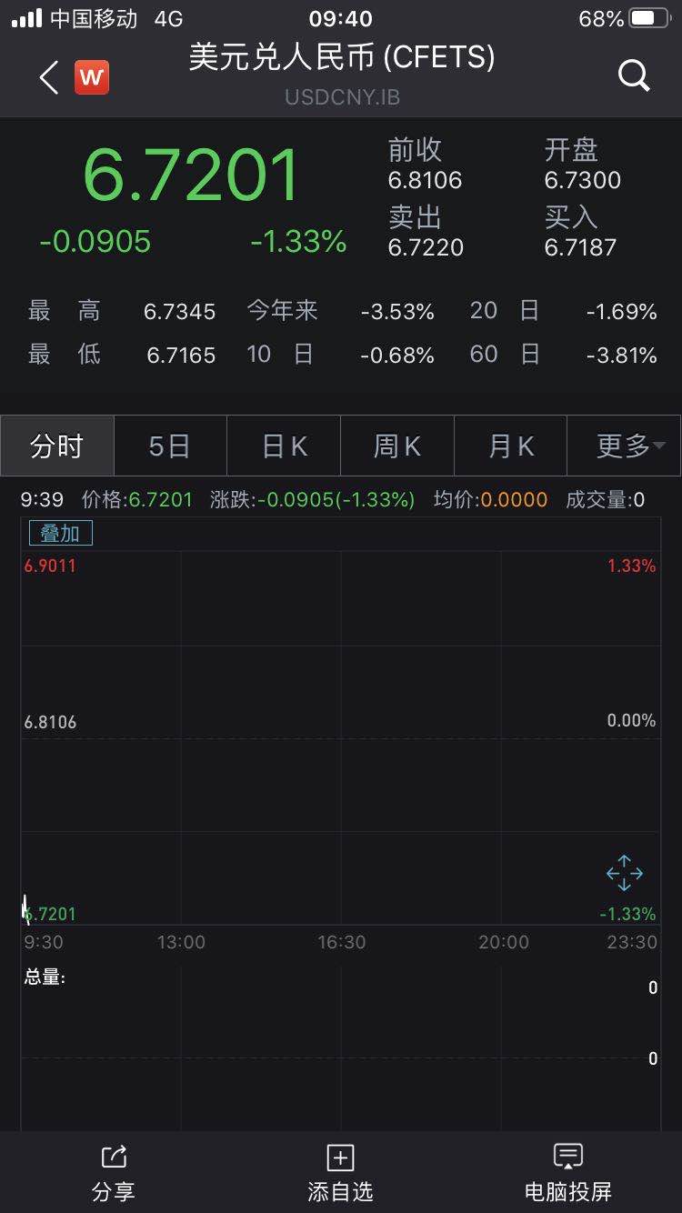 10月9日,在岸人民幣兌美元大漲超900個基點,一度升至6.7201,創去年4月以來新高。截止發稿,美元兌人民幣匯率報6.7209點。