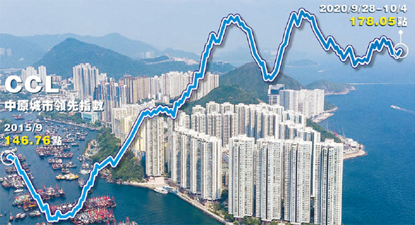 反映二手樓價的中原城市領先指數(CCL)重上178,是六個星期以來的高位,樓市有見底回升的迹象。資料圖片