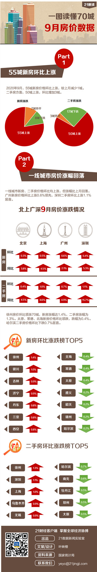9月份,初步测算,4个一线城市新建商品住宅销售价格环比上涨0.4%,涨幅比上月回落0.2个百分点。其中,北京、上海、广州和深圳分别上涨0.3%、0.5%、0.6%和0.4%。二手住宅销售价格环比上涨0.9%,涨幅比上月回落0.1个百分点。其中,北京、上海、广州和深圳分别上涨0.4%、1.0%、0.7%和1.1%。31个二线城市新建商品住宅和二手住宅销售价格环比分别上涨0.3%和0.2%,涨幅比上月分别回落0.3和0.2个百分点。35个三线城市新建商品住宅销售价格环比上涨0.5%,涨幅比上月回落0.5个百分点;二手住宅销售价格环比上涨0.6%,涨幅与上月相同。