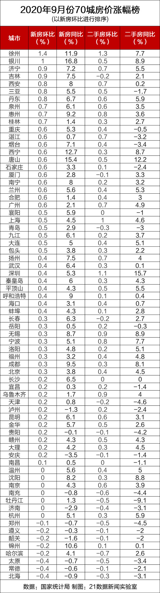 2020年9月份,各地继续认真贯彻落实党中央、国务院部署,坚持房子是用来住的、不是用来炒的定位,全面落实城市主体责任,着力稳地价、稳房价、稳预期,促进房地产市场平稳健康发展,70个大中城市房地产市场价格涨幅略有回落。