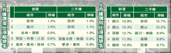 從樓價平均漲幅來看,據易居研究院智庫中心研究總監嚴躍進測算,9月份全國70個城市新建商品住宅價格指數環比漲幅為0.3%,同比漲幅為4.5%。相比8月份數據,環比和同比漲幅均有收窄。他認為,這說明許多城市新房市場正處於降價促銷的階段,樓價漲勢不會太強勢。另外,今年9月份全國各地新盤供應比較多,所以樓盤之間的營銷競爭壓力大,也推動了樓價漲幅的收窄。
