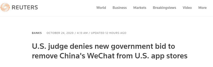 司法部堅持,WeChat與另一個應用程序TikTok,威脅美國國家安全,但法官表示,禁令對言論自由造成的影響,大於政府維持合理利益所需程度,所以維持裁決。司法部已向聯邦第九巡迴上訴法院提出上訴,但預計12月前不會有裁決。