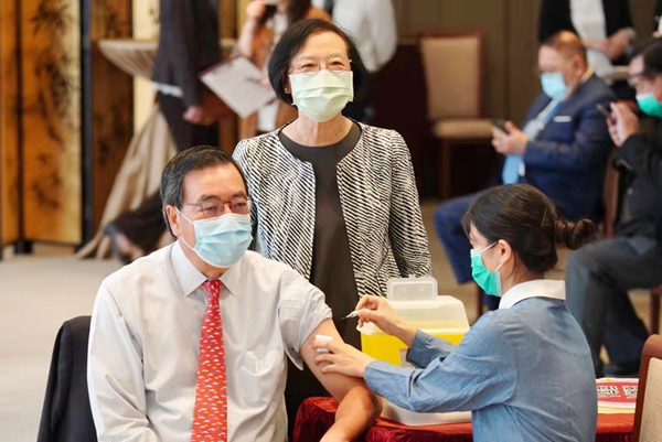 多名立法會議員接種流感疫苗,食物及衛生局局長陳肇始亦有到場。記者馮俊文攝