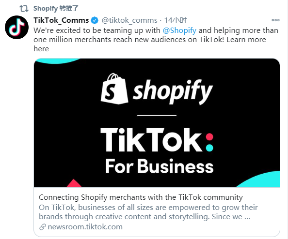 而TikTok稱其一直在尋找將品牌與用戶連接起來的新途徑,形容Shopify是一間完美的合作夥伴,能夠幫助TikTok擴張全球商業實力。