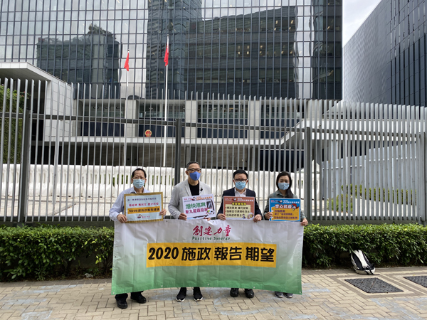 新一份《施政報告》快將公布,東九龍居民委員會丶創建力量多名成員,以及立法會議員謝偉俊今日到金鐘政府總部請願,促請行政長官在各方面重建經濟,改善民生。他們向政府總部職員遞交意見書後和平散去離開。