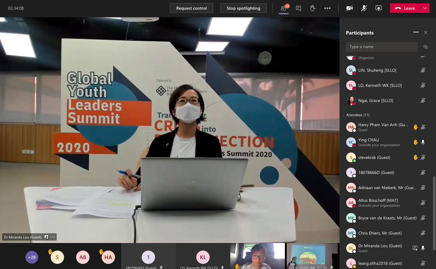 「全球青年領袖薈萃2020」高峯會召集人倪恩恩博士認為新冠肺炎疫情可帶來很多機遇,而世界各地的人都很熟習新的協作模式,大會期望年輕一代能夠將獲得的經驗在其他領域充分發揮。