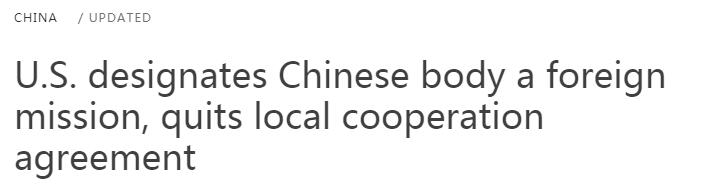 路透社稱,這項由美國國務卿蓬佩奧宣布的行動,是美方在大選前遏制中方在美活動的最新舉措。蓬佩奧在一份聲明中表示,美國華盛頓中國和平統一促進會(NACPU)由「中國統戰部控制」,而後者是「中國共產党的一個機構,負責在海外傳播影響力和宣傳」。