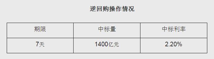 公告顯示,為維護銀行體系流動性合理充裕,2020年10月29日人民銀行以利率招標方式開展了1400億元逆回購操作,中標利率維持2.20%不變。