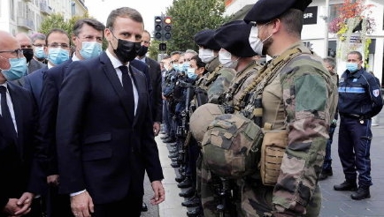 法國總統馬克龍事發後立即前往尼斯視察,指事件是伊斯蘭恐怖襲擊,是再一次攻擊法國核心價值觀,強調不會向恐怖主義屈服,並下令增派4000人到全國公共地方,特別是教堂及學校,又將全國保安提升至最高警戒級別。總理卡斯泰當天宣布,將法國全境反恐安全警戒級別提升至最高。