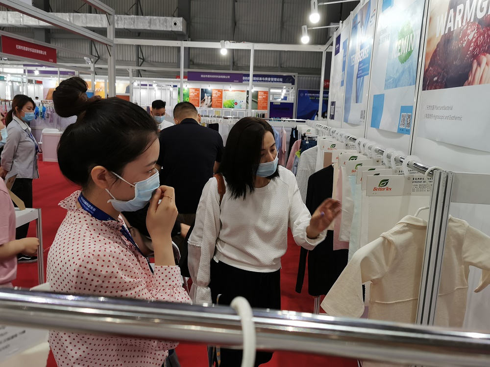 展品包含棉、毛、絲、麻、針織、化纖、印花、繡花、蕾絲、工作防護服、梭織、牛仔、醫用口罩、隔離衣、無紡布、拉鏈、紐扣、線、帶、標牌、墊肩、罩杯等全產業鏈產品。其中一家來自陝西晉城的絲麻面料製造商展出多款絲麻面料產品,該展位相關負責人閆霄志在接受本報記者採訪時表示,市面上大部分面料產品是純棉、真絲或是纖維,融合絲麻兩種原料的面料在具備色澤光亮、體感柔滑的同時,兼有透氣性好、舒適的優點,去年來參展與幾家廠商達成合作;今年疫情衝擊,內銷與外銷均受衝擊,尤其是外銷產品在上半年連樣品都沒法送出,8月至9月份漸有好轉,望展會能拓客及獲悉市場復蘇情況。