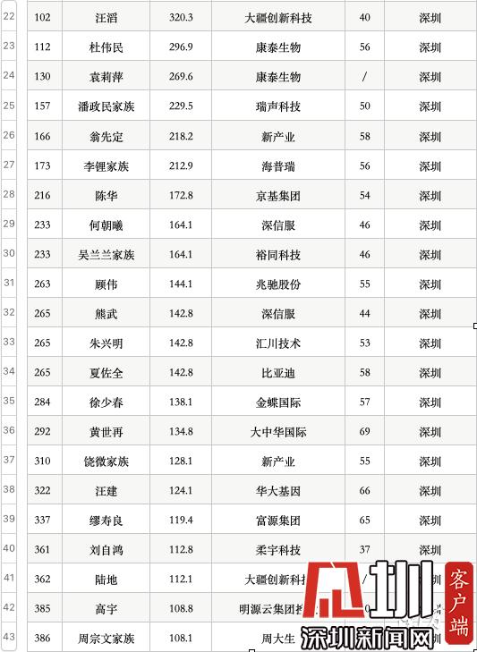 深圳受科技造富和IPO造富影響尤其典型。這份榜單上,有42位居住地在深圳的富豪。