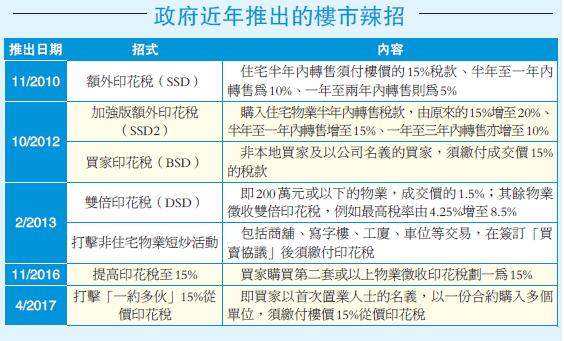 實施雙倍印花稅後的非住宅成交,最高逾2000萬元物業的印花稅率高達8.5%。至於受疫情影響今年工商舖價格大跌,金管局近期已經採用「逆周期」措施,放寬非住宅物業的按揭成數至最多五成。同時,上月政府亦撤回一手住宅空置稅的草案,當時財經事務及庫務局局長許正宇曾指出,是從公共財政的宏觀角度及經濟長遠發展為考慮,目標是盡快恢復經濟活力。