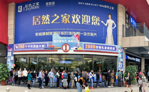 「今年居然之家全國276家賣場,入駐天貓同城站參加雙11,上萬件的爆款商品同時開售。北京、成都、巴中、綿陽、龍岩等多個城市的門店都出現排長隊,被顧客圍得水泄不通,迎來第一波爆發。」居然之家負責人表示,當天來自天貓同城站的諮詢量達預售期的2倍以上。