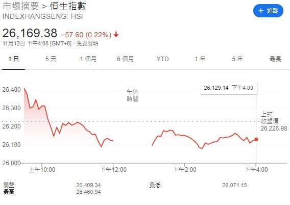恒指收報26169.38點,跌57.6點或0.22%,大市成交額1603.23億元。科技股反彈,恆生科技指數大幅收漲3.23%。國指收報10579.47點,升0.36%。