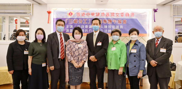 中總婦女委員會主席蔡關穎琴致歡迎辭時表示:「習近平國家主席說過香港政治體制是行政主導,呼籲『三權合作』。林鄭月娥行政長官也明確表示,香港沒有『三權分立』,只有『各自分工』,特區享有的行政、立法和司法權力均來自中央授權;三權可以互相配合,也可互相制衡。為協助會員了解『三權』如何分工和合作,中總婦女委員會將舉辦『三權合作』系列午餐會,邀請不同講者分別從行政、立法及司法層面探討相關議題。」