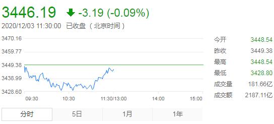 12月3日,星期四,農曆十月十九。今日三大指數走出震蕩回升格局,三大股指均小幅低開,開盤後市場呈現分化行情,深成指、創業板指震蕩走弱,創業板指短暫下挫後率先走強翻紅並將漲幅擴大至1%,滬指、深成指在午前小幅回暖。盤面上,疫苗概念明顯走強,銀行、證券板塊早盤再度拉升。OLED板塊表現較為強勢,有色板塊回調。個股跌多漲少,賺錢效應較差。