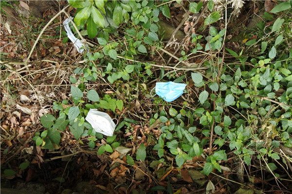 郊野隨處可見防疫用品垃圾