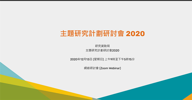 研究資助局指今日(13日)以網上形式舉行2020年主題研究計劃研討會,而在第三、第四和第五輪主題研究計劃中獲資助的12個項目之研究團隊會向210名研討會參加者以及公眾展示他們的研究成果。