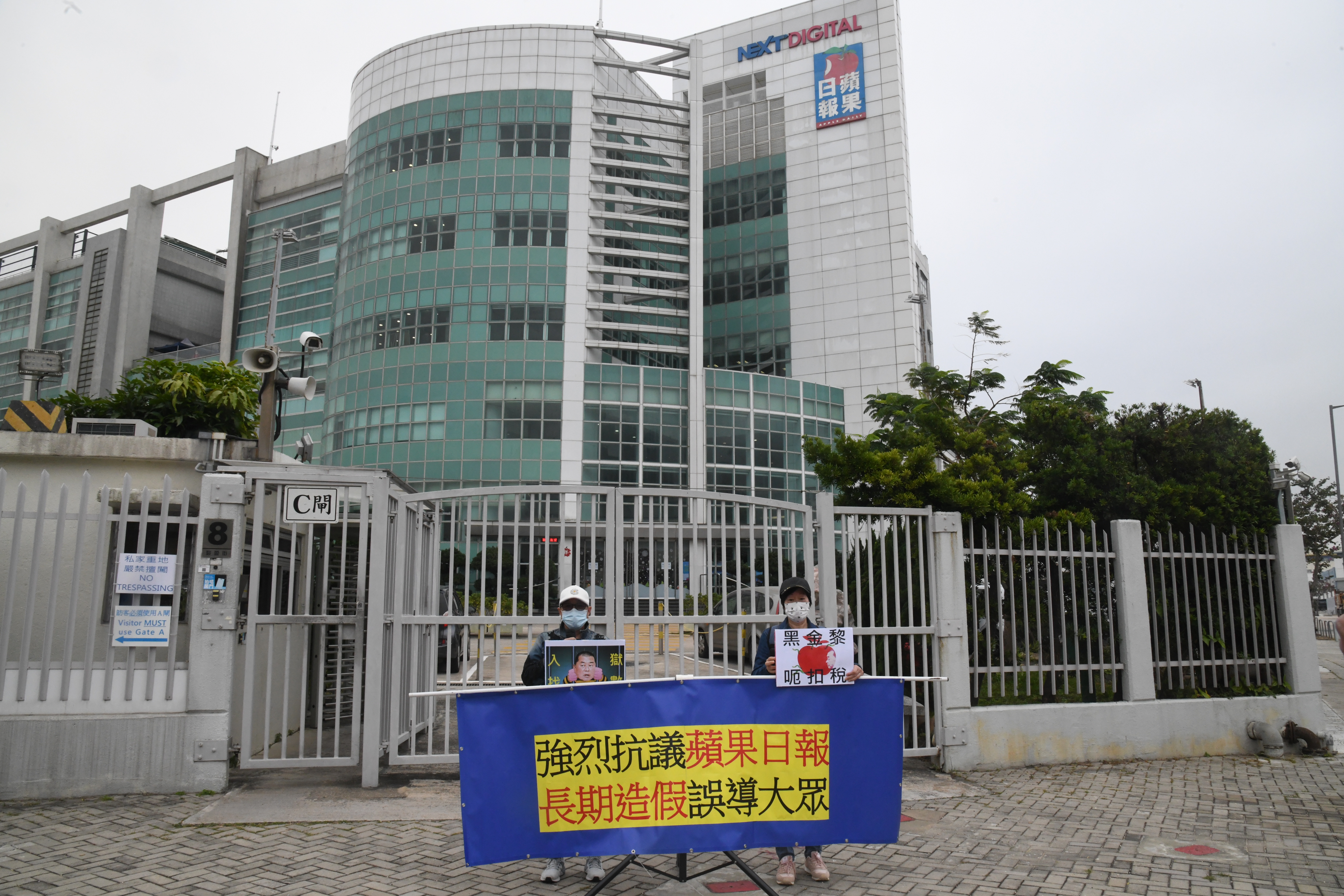 有市民今日(14日)下午自發舉行「抗議蘋果造假」集會,到位於將軍澳工業邨的壹傳媒集團外強烈抗議蘋果日報長期造假誤導大眾。到場人士展示抗議橫額,並高叫「蘋果日報誠信破產」、「信佢一成雙目失明」等口號,他們稍後和平散去。