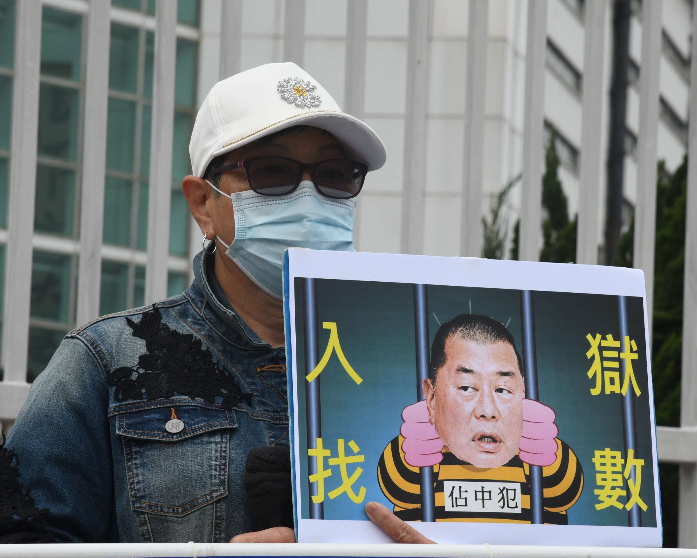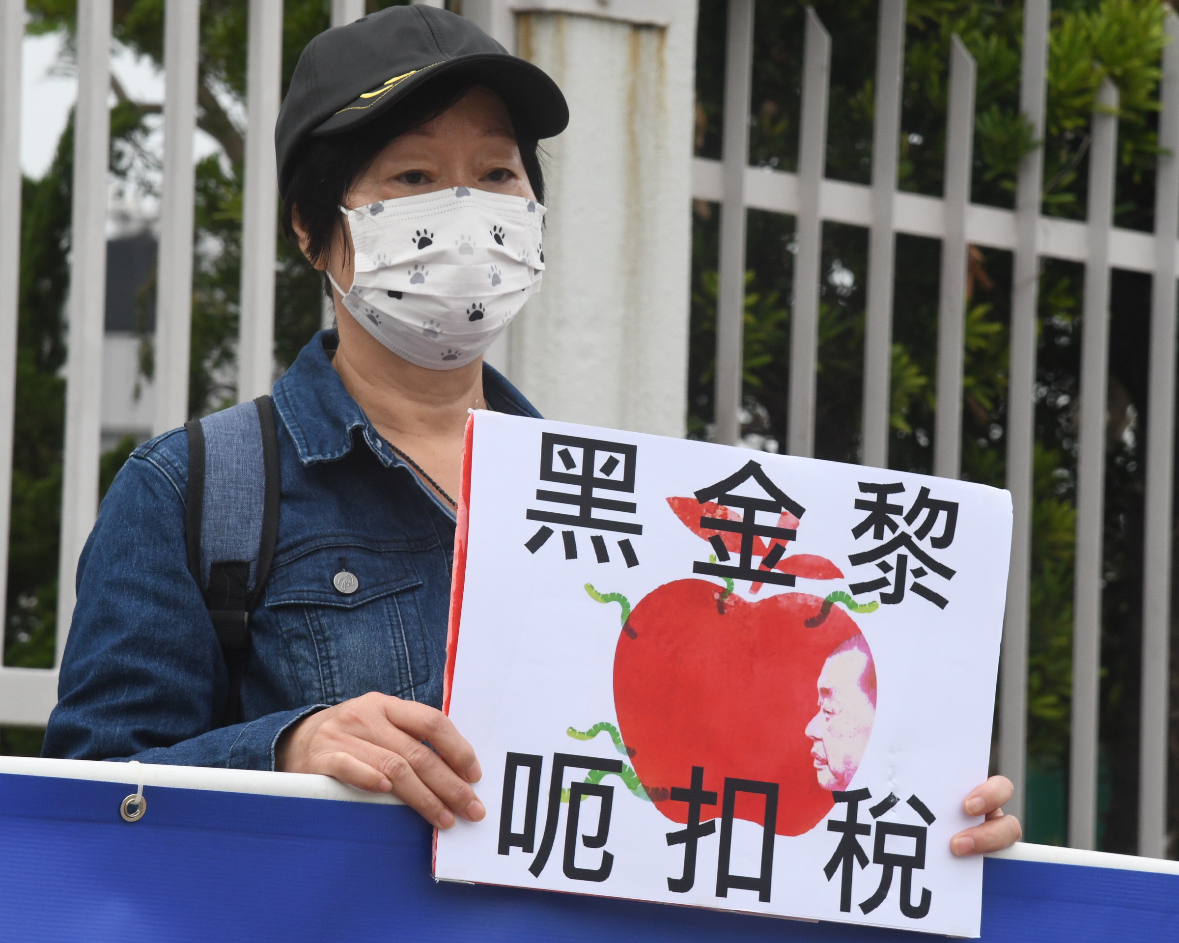 市民代表張女士表示,蘋果日報長期造假,為其政治目的誤導大眾,惡意令社會帶來不穩因素。她補充,近月蘋果日報多宗假新聞被揭破,證據確鑿,當中包括黎智英助手Mark Simon於美國出賣製告假報告,抹黑美國總統候選人拜登,意圖協助特朗普競選任,以及虛構屯門反對派區議員盧俊宇被警方拘捕,全城嘩然。(記者 何家驊 蔡啟文 攝)